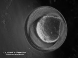 Anmerkung: Die Bilder 1 - 37 wurden in Folge aufgenommen. Sie stammen von ein und demselben Ei. Die Bilder 38 bis 49 dokumentieren die Entwicklung eines anderen Synodontis cf.nigrita Eies. Aufgrund höherer Inkubationstemperaturen fügt sich die zweite Bilderfolge nicht ganz nahtlos an die Vorhergehende an.