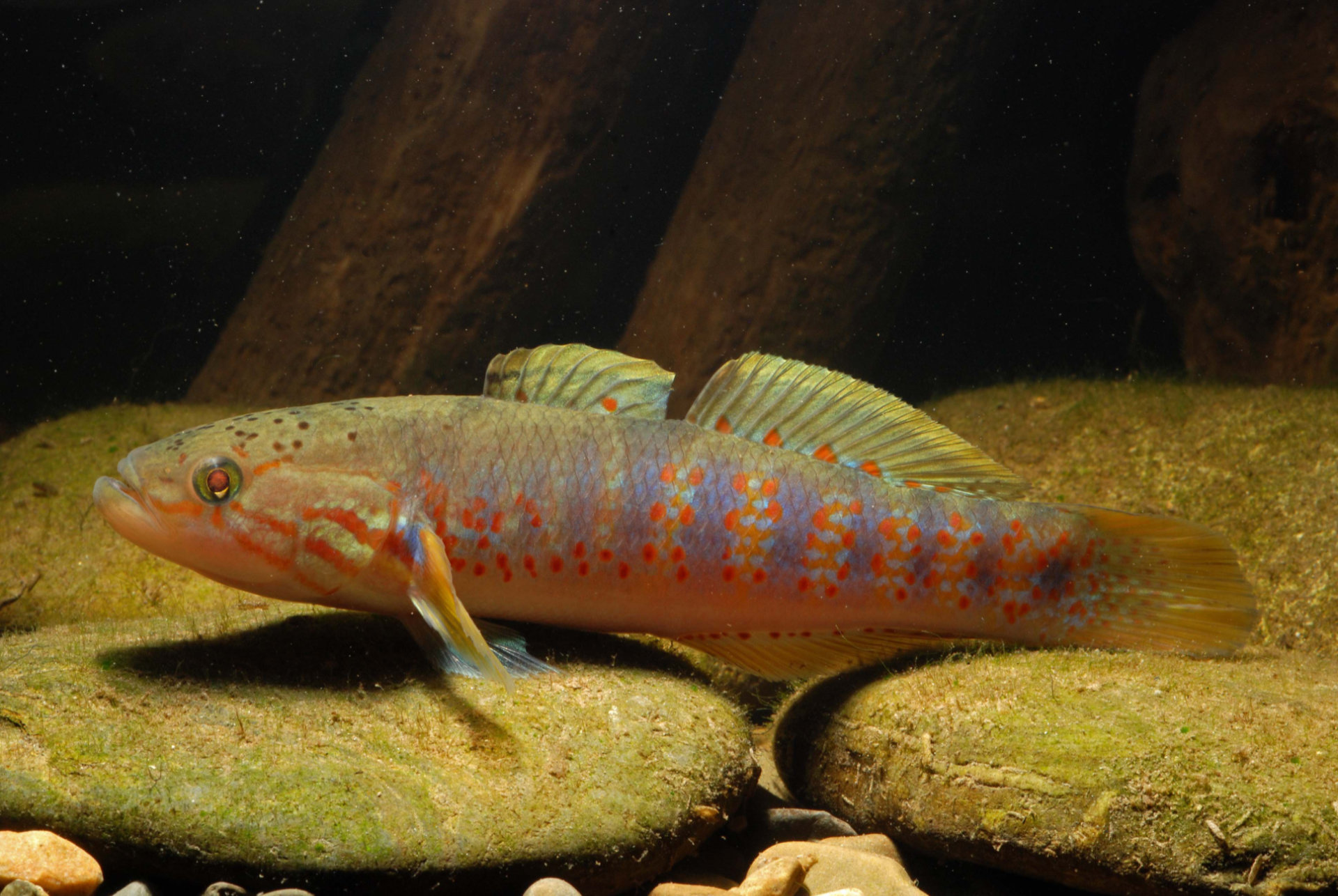 Hans Georg Evers is a good friend of our supplier Jeffery in Indonesia and, when there is no lockdown, regularly goes fishing trips with him in Indonesia and New Guinea. The species, which are often introduced for the first time, are then first propagated in Hamburg and then sent to Indonesia for further breeding in order to secure the population for the aquarium hobby. We are pleased to be able to publish some information from him about the species he found there.The peaceful sleeper goby Mogurnda cingulata from southern New Guinea could make good company for Melanotaenia picta. This peaceful species, which grows up to around 12cm, rarely larger, is very colorful and can even be grown quite easily in the aquarium. It is not uncommon to find pairs who then spawn together in cichlid fashion on flat stones or similar substrates and guard the clutch until the tiny larvae hatch.